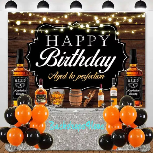 Rustic Wood Whiskey-Themed Happy Birthday Photography Backdrop