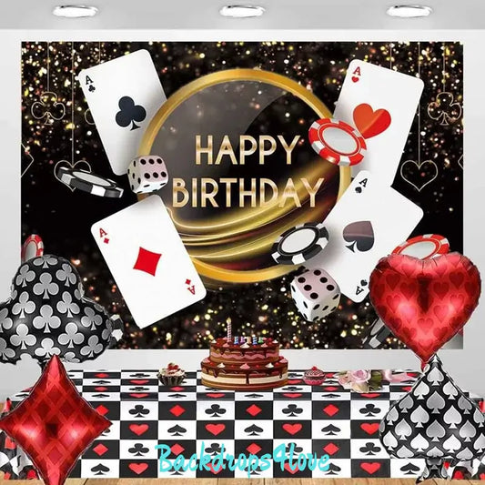 Vegas-Style Poker and Dice Happy Birthday Party Photography Backdrop