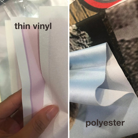 Material: Polyester ( Polyester is more like clothes and better than Vinyl )