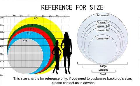 Size: The size is for diameter, eg: diameter 5ft is 150x150cm. We also leave 20cm for extra space. Here is the size chart for your reference.